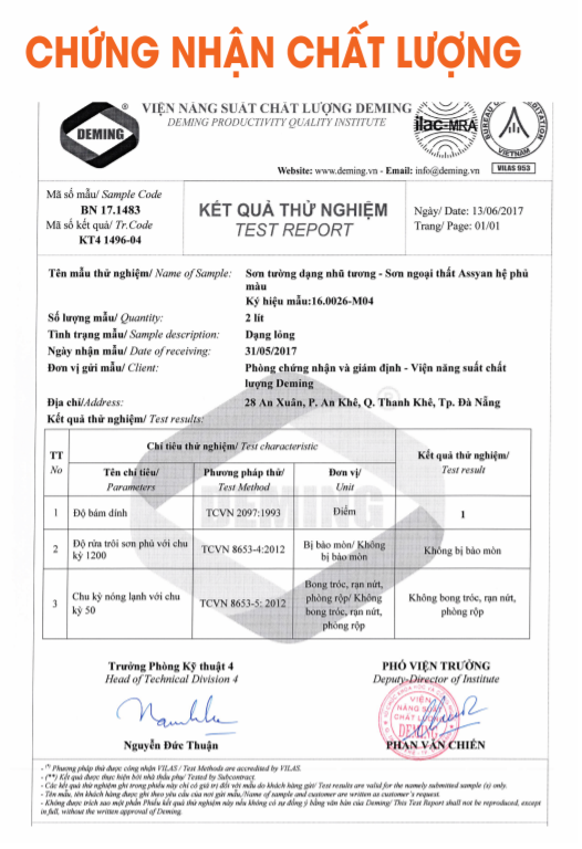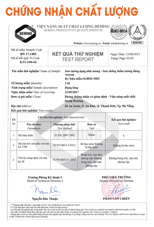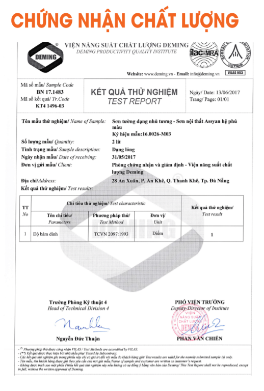 CHỨNG NHẬN CHẤT LƯỢNG