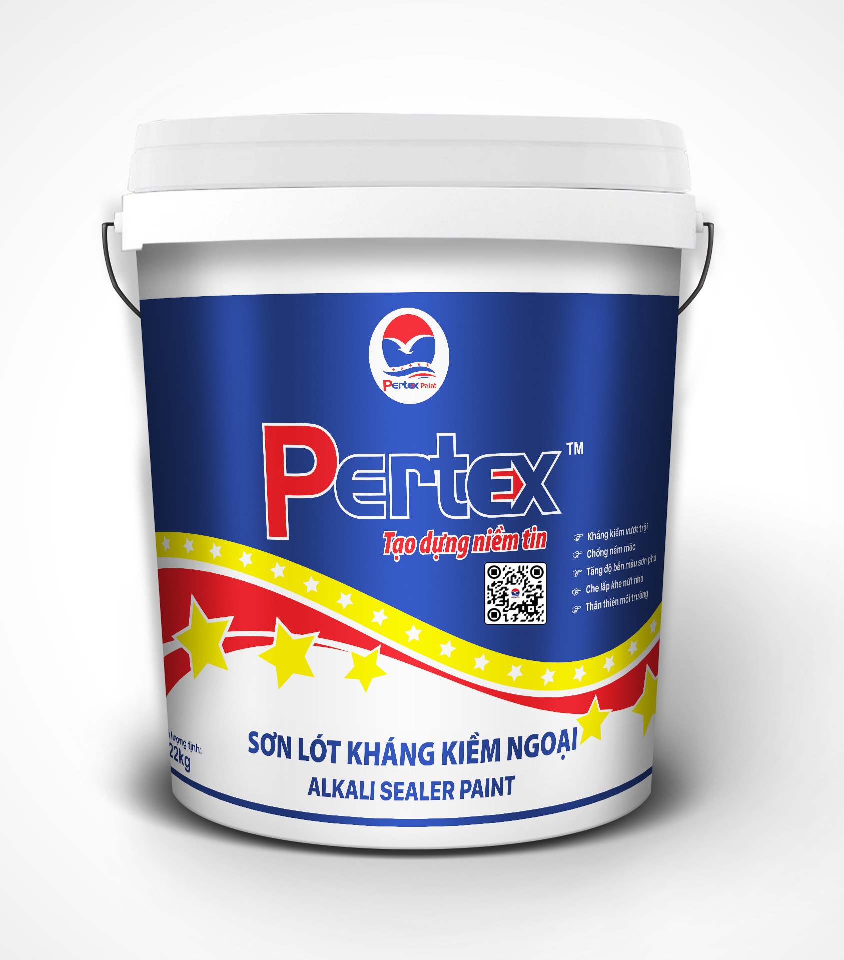 SƠN LÓT KHÁNG KIỀM NGOẠI THẤT PERTEX được cấu tạo bởi thành phần keo Styrene Acrylic Copolymer đặc biệt có khả năng kháng kiềm, có tính năng hạn chế các tác động của chất kiềm trên bề mặt tường, giúp cho lớp sơn phủ tăng độ bám dính, tăng độ bền màu, ít hao sơn phủ, dễ thi công.